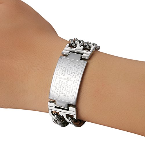 Flongo Un'Ampia Uomo Bracciale in Acciaio, Elegante Piatto Croce Lucido con Le Preghiere della Bibbia Edizione Inglese, Uomo Bracciale