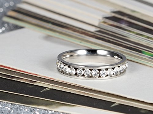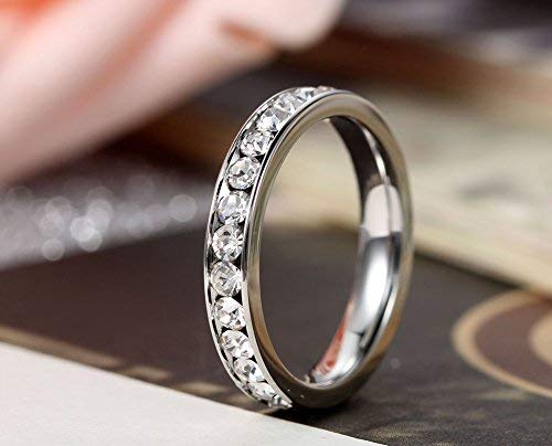 Flongo Anelli da Donna 4mm Banda con Zircone Bling Stile in Acciaio Argento