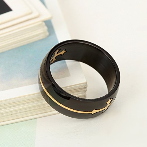 Flongo Anello Oro Nero da Uomo Acciaio Inox, Double Cross Vintage Anello Gents Classic