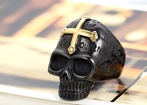 Flongo Anello Uomo Punk Rock Acciaio Nero Oro Croce Cranio Forma