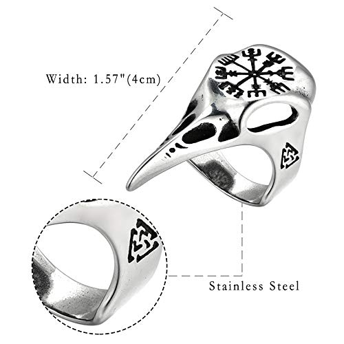 Flongo Anello da Uomo Punk Segno Nordico Vichingo Runavin Odin Bussola Regalo