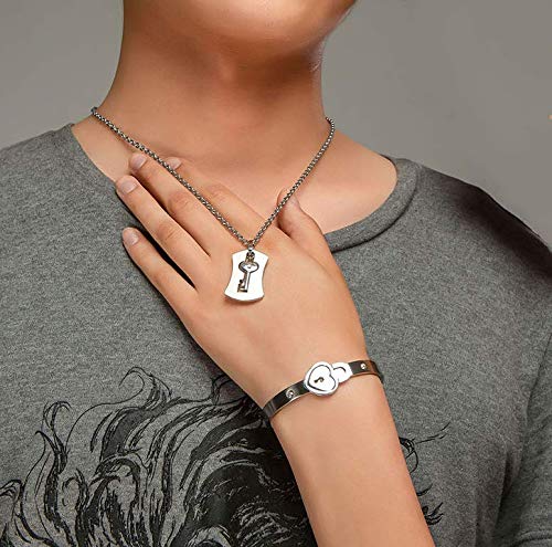 Flongo Bracciale Collana da Coppia 2 Pezzi Acciaio Inossidabile Cuore Chiave San Valentino Regalo