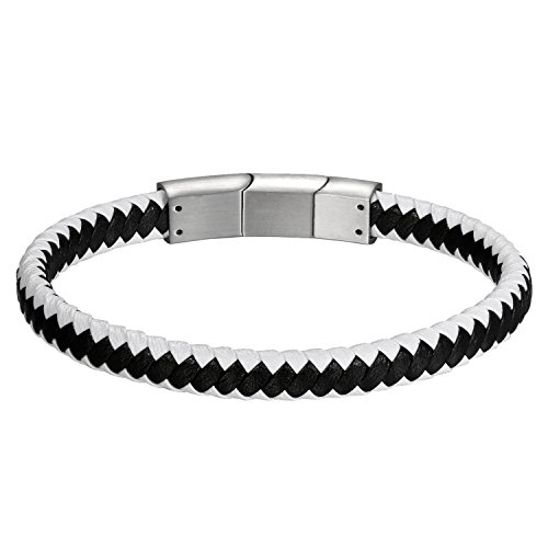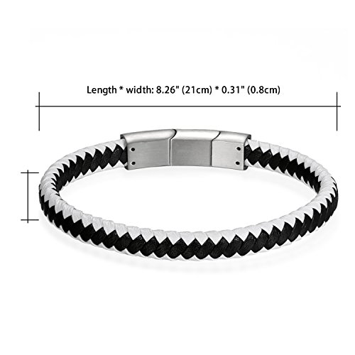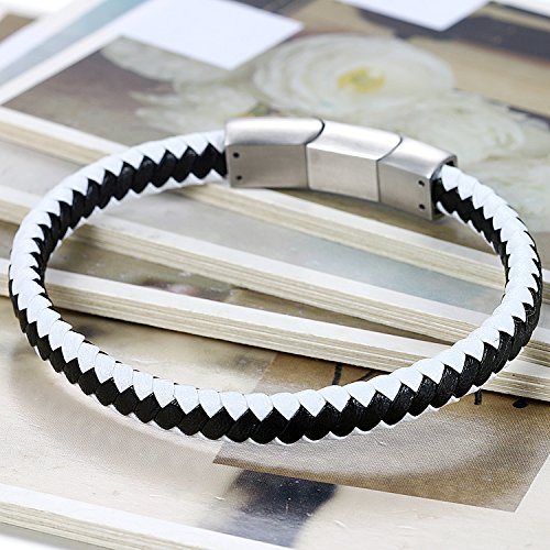 Flongo Bracciale in Cuoio Uomo Braccialetto in Pelle Intrecciata, Braccialetto Bianco Nero con Chiusura in Acciaio Inossidabile, Braccialetto Magnetico da Regalo Originale per Uomo