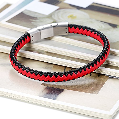 Flongo Bracciale in cuoio uomo braccialetto in pelle intrecciata, Braccialetto bianco nero con chiusura in acciaio inossidabile, Braccialetto magnetico da regalo originale per uomo, 2 pcs