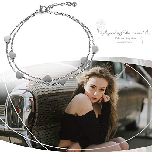 Flongo Bracciale Fortunato Donna, Bracciale Acciaio Inox Cuore,Colore Argento Oro Rosa