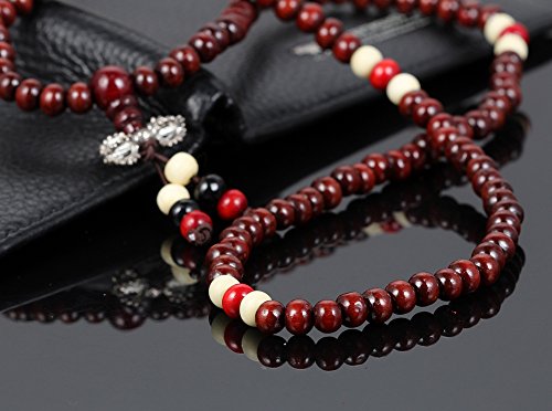 Flongo, braccialetto da uomo e da donna con perline in legno tibetano per preghiere buddiste con elastico e nodo cinese da 8 mm e 6 mm.