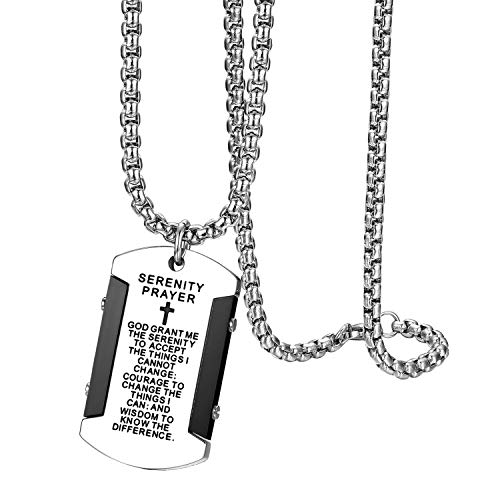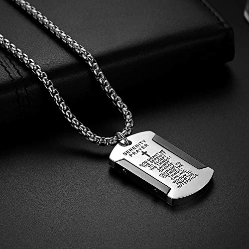 Flongo Collana Piastra Militare Ciondolo per Uomo, Collana Croce e Preghiere Dog Tag Pendente in Acciaio Inossidabile, Collana Originale Stile Americano Regalo di Natale, Argenteo Nero