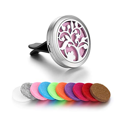 Flongo Deodorante Aromaterapia per Auto Macchina Diffusore per Olio Essenziale Albero Acciaio Inossidabile Aromaterapia Diffusore di Profumi con 10 Pad, Regalo di Natale