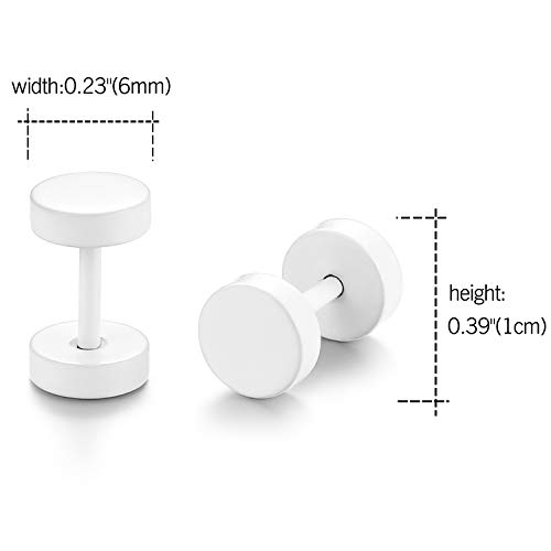 Flongo Orecchini bianchi tappi rotondi orecchini per uomo donna, Orecchini Hip Hop 6mm in acciaio inossidabile, Semplici orecchini rotondi, 1 paio