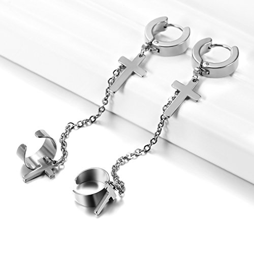 Flongo Orecchini Falsi Hip Hop, Orecchini per Uomo Donna Acciaio Inossidabile, Orecchini Orecchie Orecchini Cerchi Clip, 1 Paio Argenteo