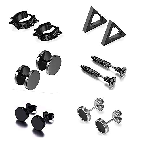 Flongo Orecchini, Punk, Rock, Hip-Hop, Unisex, in acciaio inox, 6 Paia