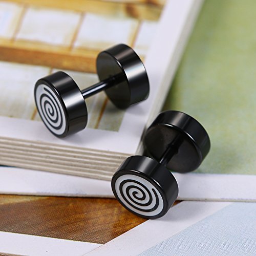 Flongo Orecchini per Uomo Donna 8mm Orecchini Cerchi in Acciaio Inox Studs, Orecchini di Tappi Neri, Hip Hop
