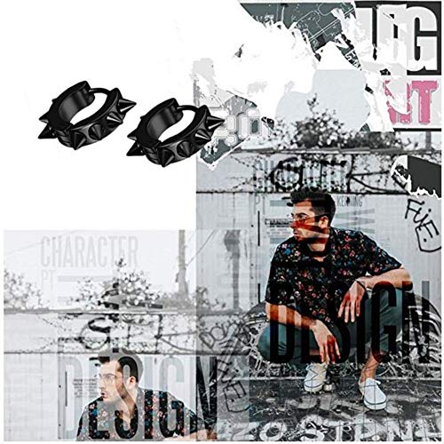 Flongo Rivetti orecchini punk rock, Orecchini a cerchio da uomo donna, Orecchini unisex in acciaio inox stile hip hop, nero