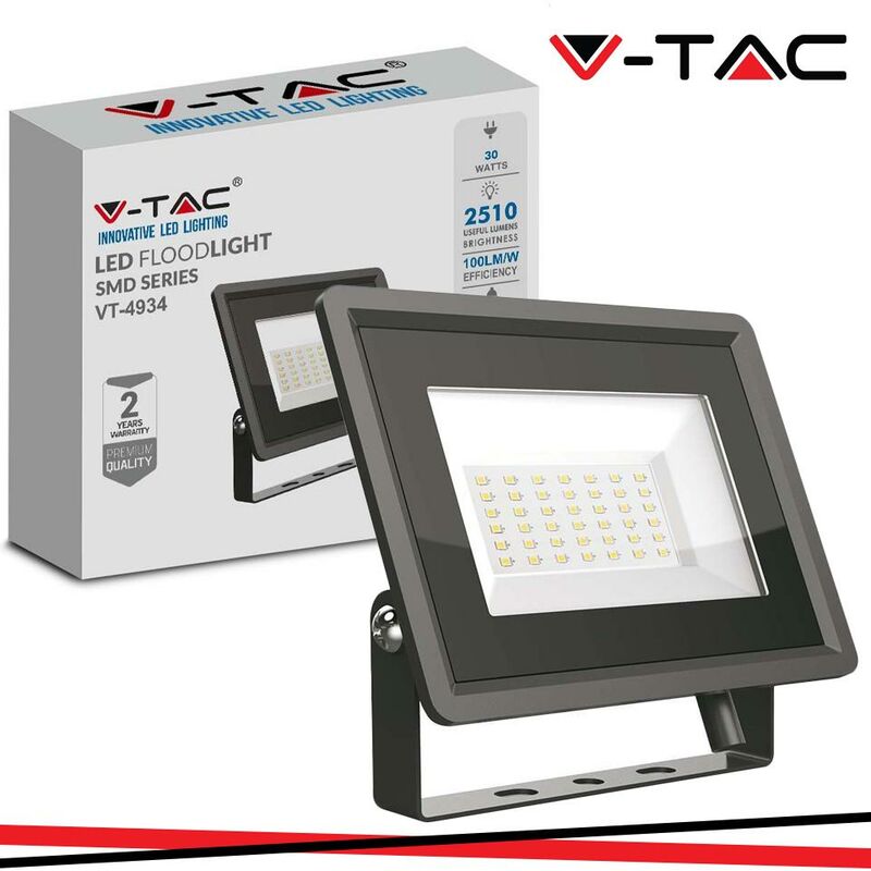 30W LED Floodlight SMD Corpo nero 3000K SKU: 6743: VT: VT-4934 Caratteristiche del prodotto .Bianco freddo, naturale, caldo .Disponibile da 10W fino a 100W .Migliore Qualit del corpo in lega di alluminio .Resistente alla corrosione .Maggiore impermeabilit /ermeticit dell involucro in vetro, sigillato con gomma siliconica .Migliore Qualit dei componenti LED .Integrato di Driver a corrente costante .Integrato di Alimentazione, non necessario trasformatore esterno Installazione .Passi carrai .Giardini .Cartelloni .Campi sportivi .Parcheggi etc.~ Specifiche tecniche ~: Informazione generale = ~:Tipo LED=SMD~:Vitamedia=25,000 ore~: Dati elettrici = ~:Potenza=30W~:Tensione=AC:100-240V~:Frequenza=50/60Hz~:Fattore di potenza=>0.9~: Dati tecnici luce = ~:Fascio Luminoso°=110°~:Colore della luce=Bianco caldo~:Temperatura di colore=3000K~:Flusso luminoso (lm)=2510 lm~:Indice di resa cromatica Ra=>70~: Dettagli corpo = ~:Colore=Nero~:Materiale=Alluminio~: Funzionalità = ~:IP
