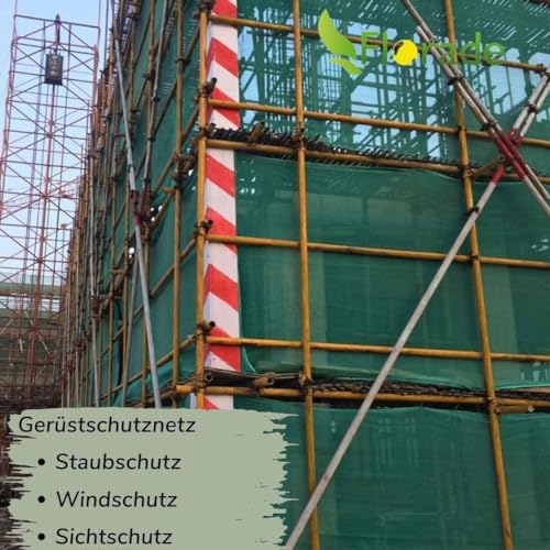 Florade Rete di protezione per ponteggi, robusta protezione da componenti cadenti e polvere forte, resistente ai raggi UV e alla decomposizione, peso del tessuto 80 g/m², larghezza maglie 5 mm x 4 mm,