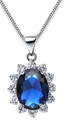 FLORAY Donna Elegante Zaffiro blu Collane con pendente, Forma ovale o girasole, Placcato oro, Sterling catena argento