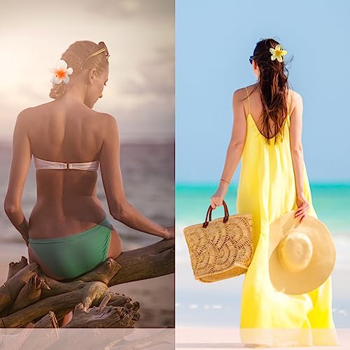 Floreali Mollettone Capelli Grande,Fermagli per capelli a fiore Plastica, Hawaiana Plumeria a forma di fiore tropicale,Fiori Pinze Per Capelli per Donne Ragazze con Acconciature