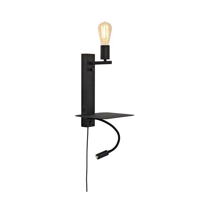 Attacco E27 Massimo potenza (W) 60 Materiale Ferro altezza (cm) 38cm Interruttore on/off Interruttore dimmer su piastra a parete Massimo larghezza (cm) 24cm Dimensioni base (cm) 3,5cm x 6cm x h.38cm Materiale/colore cavo elettrico Tessuto/Nero Lunghezza cavo elettrico (cm) 200 Lampadina non inclusa dotata di una presa usb per i vostri devices