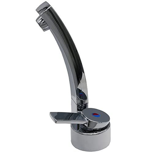Florenz - Rubinetto miscelatore monoelfo compatto per camper, roulotte, caravan, campeggio, con interruttore orientabile, cromato