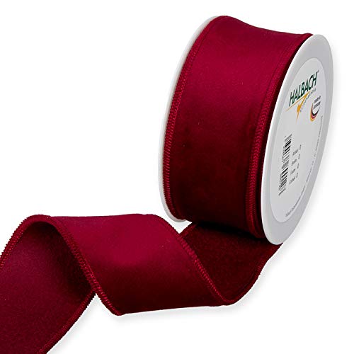 FloristryWarehouse - Nastro natalizio in velluto effetto stropicciato, colore bordeaux, larghezza 50 mm per 8 metri di lunghezza, su rotolo, con bordo in filo metallico