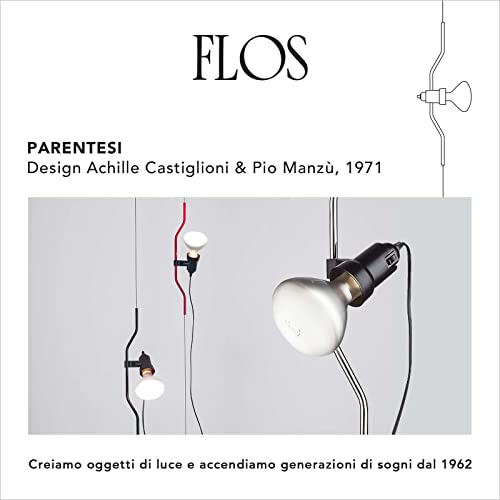 FLOS Parentesi Lampada a Sospensione a Luce Diretta, Lampada di Design da A. Castiglioni e P. Manzù, Lampada per Interni con Cavo 4000 mm, 220-250 V, 150 W, Colore Nichel
