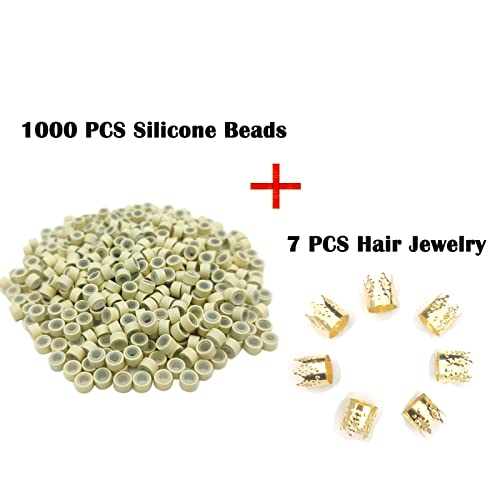 Flosius 1000 pezzi Microring Silicone per Extension Micro Anelli 5 mm Micro Beads per estensioni dei capelli Perline per I Tip Estensioni Dei Capelli Umani Strumento (#613)
