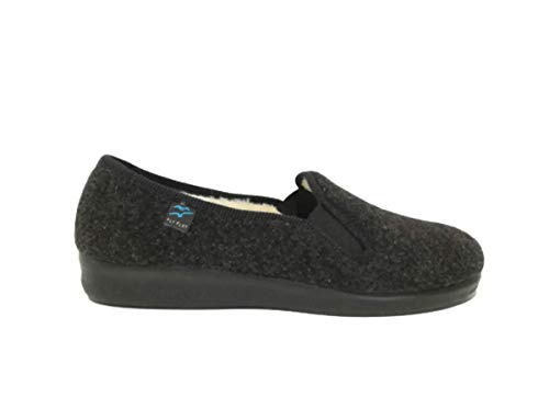 Fly Flot | Full Slipper Man, Pantofole Uomo con Elastico Regolabile, Ciabatta con Tomaia e Sottopiede in Vera Lana, Nero, 41