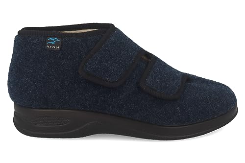 Fly Flot | Full Slipper Man, Pantofole Uomo con Velcro Regolabile, Sottopiede e Tomaia in Vera Lana, Blu, 44