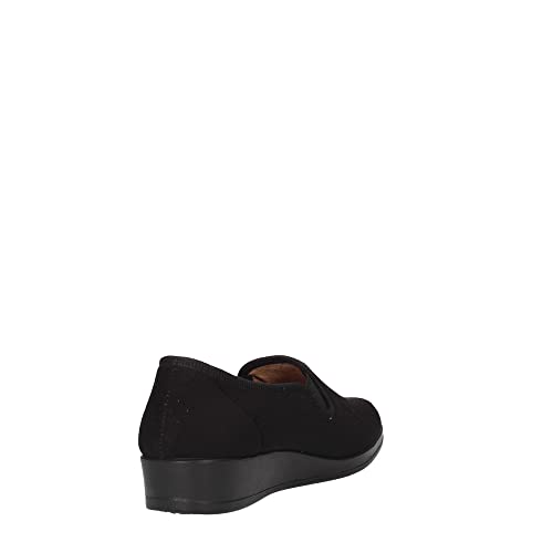Fly Flot | Full Slipper Woman, Pantofole Donna con Fiore Ricamato, Tomaia in Morbida Microfibra e Peluche con Elastico Regolabile, Sottopiede in Microfibra Antishock, Nero, 38