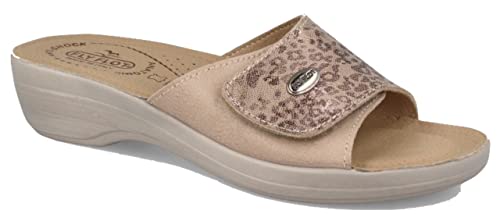 Fly Flot T5G16 VE Beige Ciabatte Pantofole ESTIVE Made in ITALY Strappo Regolabile SOTTOPIDE Vera Pelle Anatomiche, ANTISHOCK, AUTOMODELLANTE, Antiscivolo, Suola PIUMATECH, Zeppa 4 CM