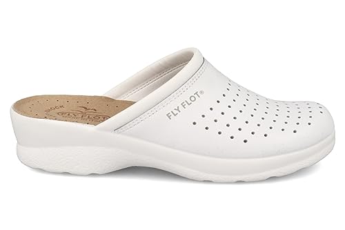 Fly Flot | Woman Professional, Zoccoli Sanitari Donna, Ciabatta con Tomaia in Pelle Forata, Sottopiede Imbottito in Pelle Antishock, Bianco, 42