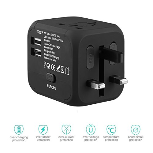 Floureon Adattatore da viaggio universale Power Adapter con Dual USB per US UK EU Asia NERO