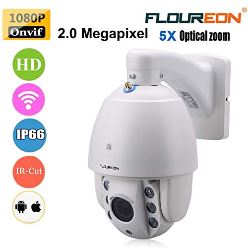 FLOUREON - sd237 W telecamera IP wireless PTZ esterno anti-foudre HD 1080P zoom 4 x visione notturna rilevazione di movimento allarme per Mail CCTV Onvif WIFI visione a distanza per Smartphone