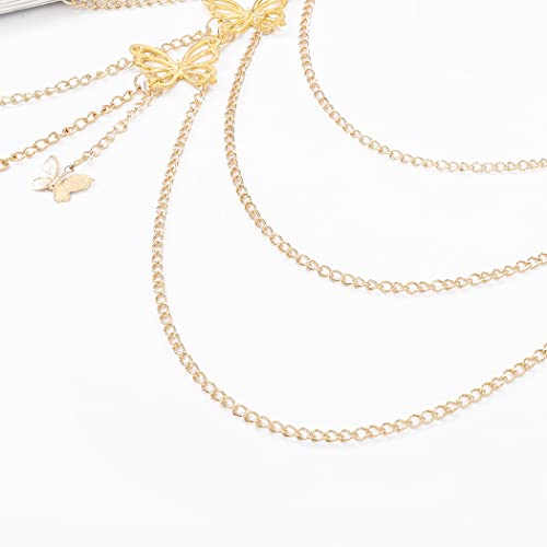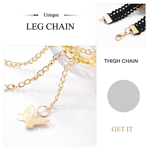 Flovel Catena per gambe a farfalla Boho Catene per il corpo a strati dorate Catena per coscia da discoteca Gioielli regolabili per donne e ragazze