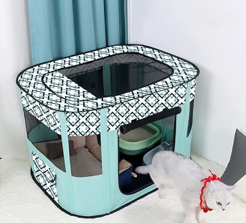 Floving Cuccia portatile per animali domestici, pieghevole, rettangolare, per sala da parte, cuccia per gatti, cuccioli, cuccia per animali domestici (Azzurro, M/80 * 60cm)