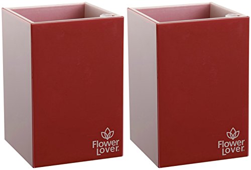 Flower Lover - Fioriera per interni o esterni, con sistema di autoirrigazione., Passion Red, Cubico 9x9x13cm Value 2-Pack