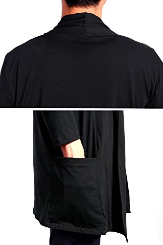 FlowerDas Cardigan Lungo da Uomo Maglieria Casual in Misto Cotone Mantella Leggera drappeggiata con Colletto a Scialle