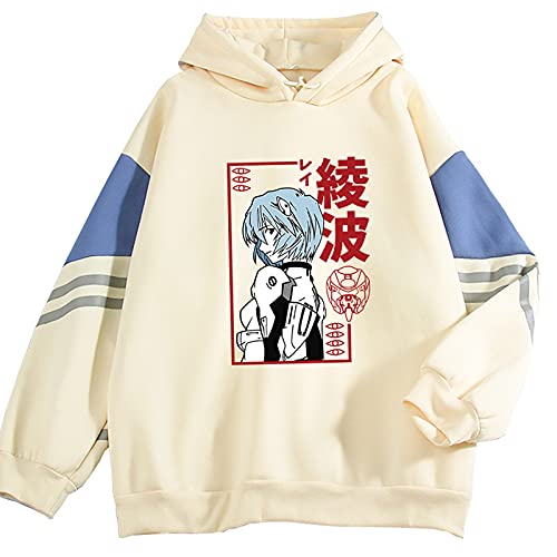 Flowereyes Felpa con Cappuccio Eva Ayanami REI Felpa con Cappuccio REI Ayanami Felpa con Cappuccio Unisex REI Color Clash Harajuku Casual Eva Ayanami REI Top Allentato Color Caramella