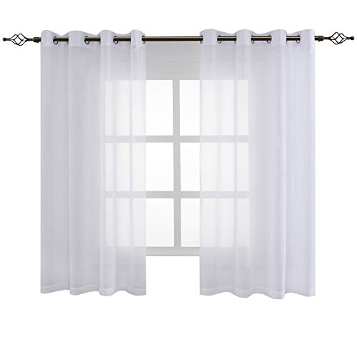 FLOWEROOM Tenda in voile trasparente, tinta unita, per soggiorno, 175 x 140 cm, colore bianco, set da 2