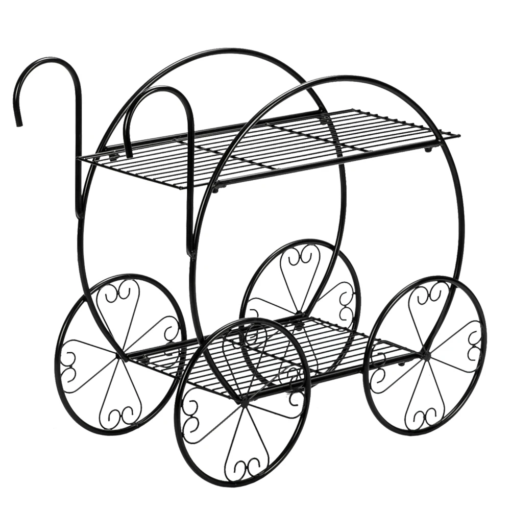 Flowerpot Flower Stand Wrought Iron Garden Cart Shape Countyard Household Outdoor Decoration Sturdy Organizer with Handle