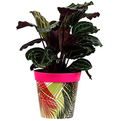 Hum Flowerpots, 25 cm, Vari Modelli, Colori e Dimensioni, Vaso per Piante in Plastica per Interni ed Esterni, Foglie di Palma Rosa