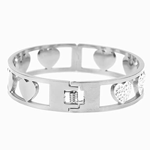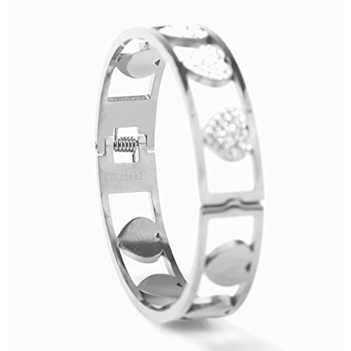 Flowers Bracciale Rigido a Manetta Interamente in Acciaio con Lettera Iniziale Nome e cuori, da un lato ricoperto di zirconcini brillanti ✨Bracciale Rigido a Manetta Interamente in Acciaio con Lettera Iniziale Nome e cuori, da un lato ricoperto di zirconcini brillanti