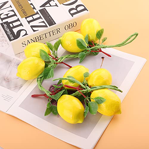 Flueyer 3 rami artificiali di limone, ghirlanda di limoni con foglie verdi realistiche di limoni finti puntelli di frutta per la casa cucina della fattoria decorazione dell'hotel