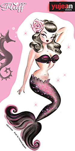 Fluff - MERMAID BLACK AND PINK - Retro Pinup - 6.6" x 3.75" - Extra Long Lasting, All Weather/UV Resistant, Die-Cut Vinyl STICKER / DECAL