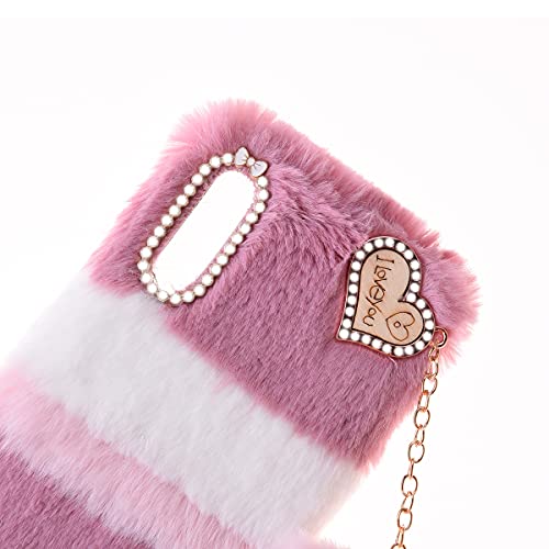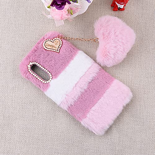 Fluffy Fur Plush Case per Wiko Y81 Custodia Peluche Faux Pelliccia Pelosa e Morbida LOVE Peluche Pom Pom Luccichio Diamante TPU Silicone Bumper Anti-drop Pretettiva Cover per Wiko Y81,Collage rosa