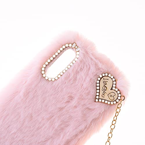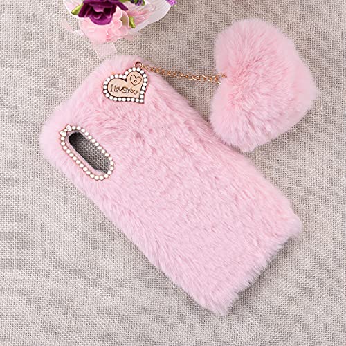 Fluffy Fur Plush Case per Wiko Y80 Custodia Peluche Faux Pelliccia Pelosa e Morbida LOVE Peluche Pom Pom Luccichio Diamante TPU Silicone Bumper Cover Anti-drop Pretettiva Cover per Wiko Y80,Rosa