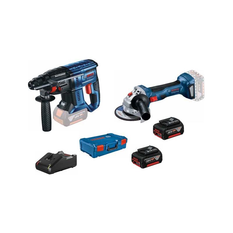 Dati tecnici: Trapano a percussione a batteria + smerigliatrice angolare a batteria GSR 18V-50GBH 180-LINVoltaggio: 18 VInergia d'urto max.: 1,7 JVelocità nominale: 1-1.800 min -1 Numero di colpi alla velocità nominale: 0-4.550 min - 1O Foratura con trapano a percussione nel cemento: 4-20 mm max. Per forare il metallo: 13 mm max. Capacità di foratura nel legno: 30 mmPeso senza batteria: 3,2 kgGWS 180-LINVoltaggio: 18 VVelocità. senza carico: 11.000 min -1 Informazioni sulla mola/mola da taglio: 125 mm Filettatura mandrino: M14 Peso senza batteria: 1,6 kg Smerigliatrice angolare a batteria GWS 180-LI L'efficiente motore brushless offre prestazioni paragonabili a quelle di una 700 W. L'alimentazione è paragonabile. Design equilibrato e impugnatura sottile, ottimizzata per eseguire diverse tipologie di taglio. Maggiore produttività di taglio grazie a una migliore efficienza e orari di lavoro più lunghi. Maggiore comfort grazie alla maniglia stretta e alla copertura protettiva regolabile