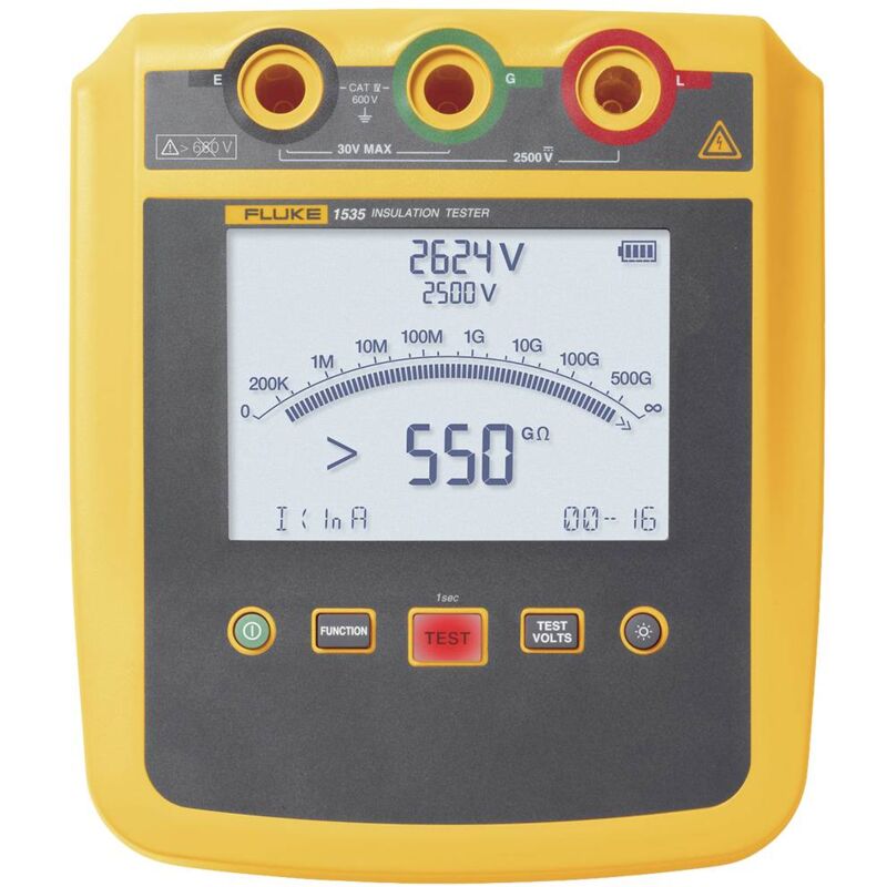 Dettagli tecnici Calibrato di fabbrica senza certificato Categoria di misura (LOV) CAT IV 600 V Dimensione del prodotto, larghezza 211 mm Dimensione del prodotto, lunghezza 93 mm Dimensioni (L x L x A) 93 x 211 x 184 mm Dimensioni prodotto Altezza 184 mm Funzione di misurazione resistenza di isolamento Peso 1.3 kg Tensione di alimentazione (dettagli) Batterie 8x AA Tipo di protezione IP40 Tipo prodotto Misuratore di isolamento Dimensioni display: 73,5 x 104 mm Misuratore di isolamento 1535 per tecnici dell'assistenza, elettricisti e aziende Questo strumento di misura offre tensioni di prova selezionabili da 250 a 2.500 V e misurazioni di resistenza fino a 500 GΩ per misurazioni rapide e stabili. Migliorate la produttività e la sicurezza dell'impianto con un unico strumento che semplifica la ricerca dei guasti e fornisce risultati rapidi e precisi. Con la tensione di prova selezionabile dall'utente, funzioni di misurazione intelligenti come il calcolo automatico dell'indice di