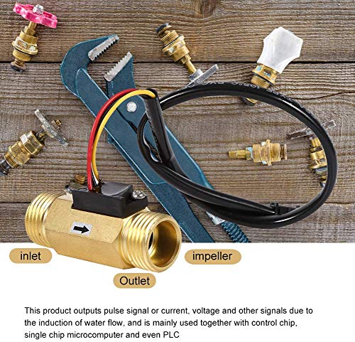 Flusso d'acqua Sensore, DN20mm G1 / 2“ Filettatura Rame Effetto Hall Acqua Sensore di Flusso Fluidmeter Liquid Acqua Flusso Interruttore Meter 1-30L / min