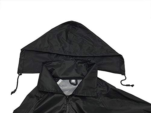 Disegni regolabili multipli: polso elastico, polsini con cordino elastico e apertura per le gambe con chiusura a scatto, sono perfetti per il tuo corpo ed evitano la pioggia. apertura a zip di facile accesso, assicura che gli utenti rimangano asciutti.Il colletto a collo alto sulla copertura antipioggia ha un cappello con cerniera che protegge dai forti venti e impedisce alla copertura di volare via durante la guida. Una tasca nascosta sul colletto posteriore tiene il cappuccio.
